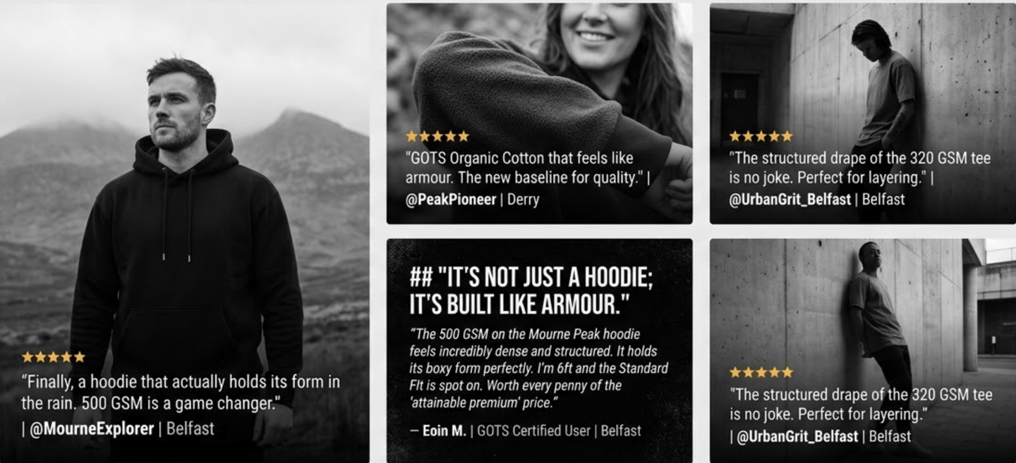 At Mourne Peak, we bridge the gap between the rugged wild and the urban. By using elite organic materials and heavyweight construction, we ensure every piece is as enduring as the landscapes that inspire us.